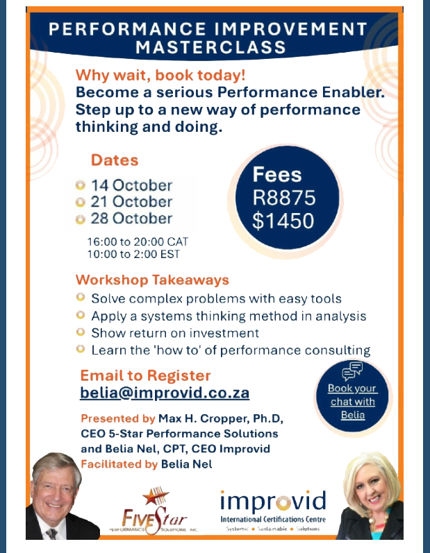 Five Star Performance Solutions & Improvid Performance Improvers are offering an ONLINE program as a foundation to ISPI Certification, which may be applied for on completion.Date: Tuesday, June 13 – Friday, July 28, 2023Where: Online coaching program.